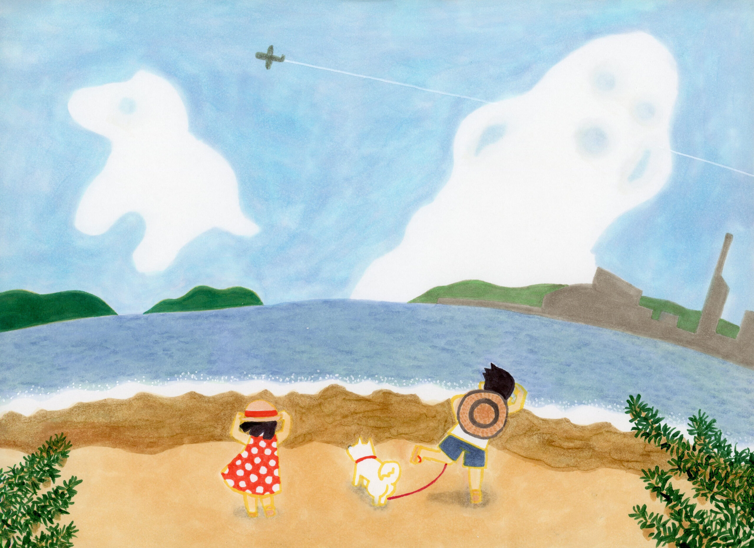 描かれているのは、福岡市西区の愛宕浜(あたごはま)。愛宕浜は、「傍流堂」の社名を思いついた浜辺で、傍流堂にとって所縁のある場所なのです。